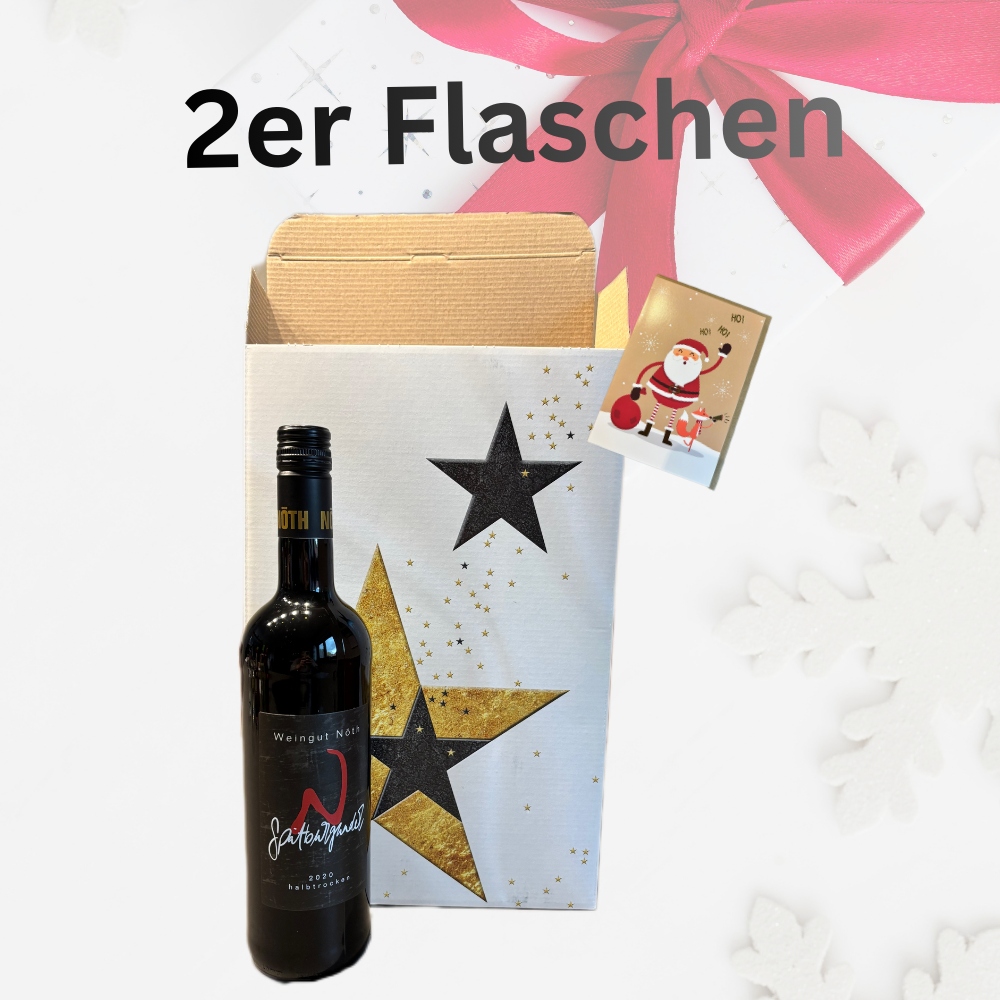 Zu Deinen ausgewählten Weinen kannst Du jetzt zusätzlich unseren festlichen Geschenkkarton erwerben – perfekt für ein stilvolles Weihnachtspräsent. Ob für Familie, Freunde, Kollegen oder als edles Geschenk für Geschäftspartner: Unsere Weine sind immer eine gute Wahl.