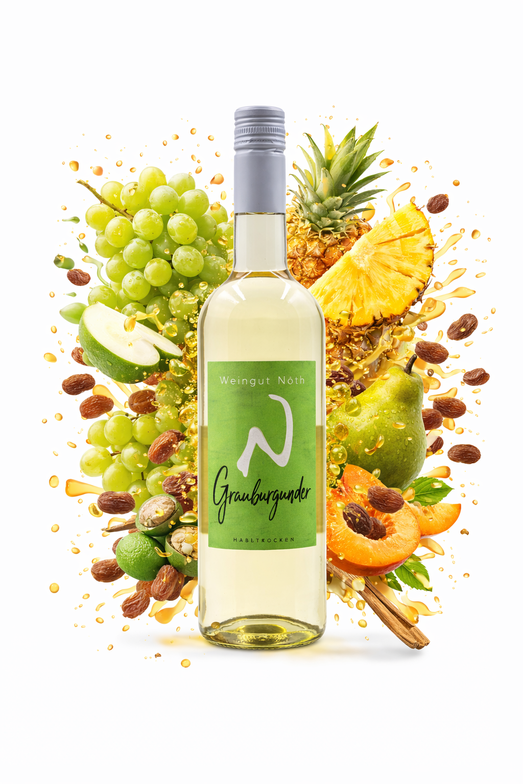Unser Grauer Burgunder halbtrocken überzeugt mit seiner hellgoldenen Farbe und einem feinfruchtigen Duft von reifen Birnen, Äpfeln und einem Hauch von Ananas. Am Gaumen zeigt er sich rund und ausgewogen, mit einer angenehmen, milden Säure und einer dezenten Restsüße, die seine Fruchtigkeit wunderbar zur Geltung bringt.