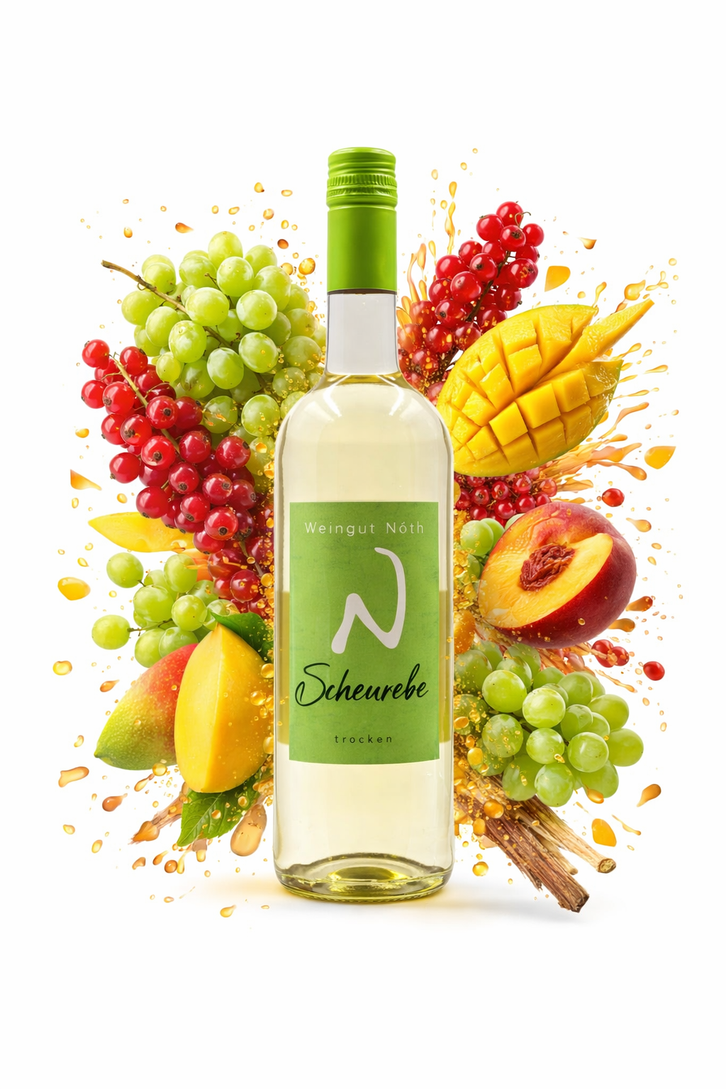 Die Scheurebe trocken zeichnet sich durch ihre lebendige Frische und aromatische Intensität aus. Im Geschmack ist sie meist fruchtbetont mit Noten von Mango, Johannisbeeren und Aprikosen.