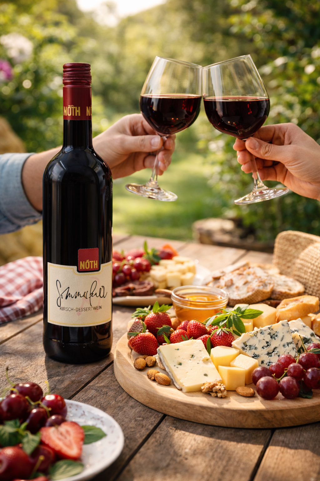 Unser Sommerfeuer entsteht aus handverlesenen Sauerkirschen der Sorte Schattenmorelle aus eigenem Anbau. Mit viel Sorgfalt und Leidenschaft in unserem Keller verarbeitet, vereint er intensives Kirscharoma, eine feine Säure und harmonische Süße zu einem unverwechselbaren Geschmackserlebnis.